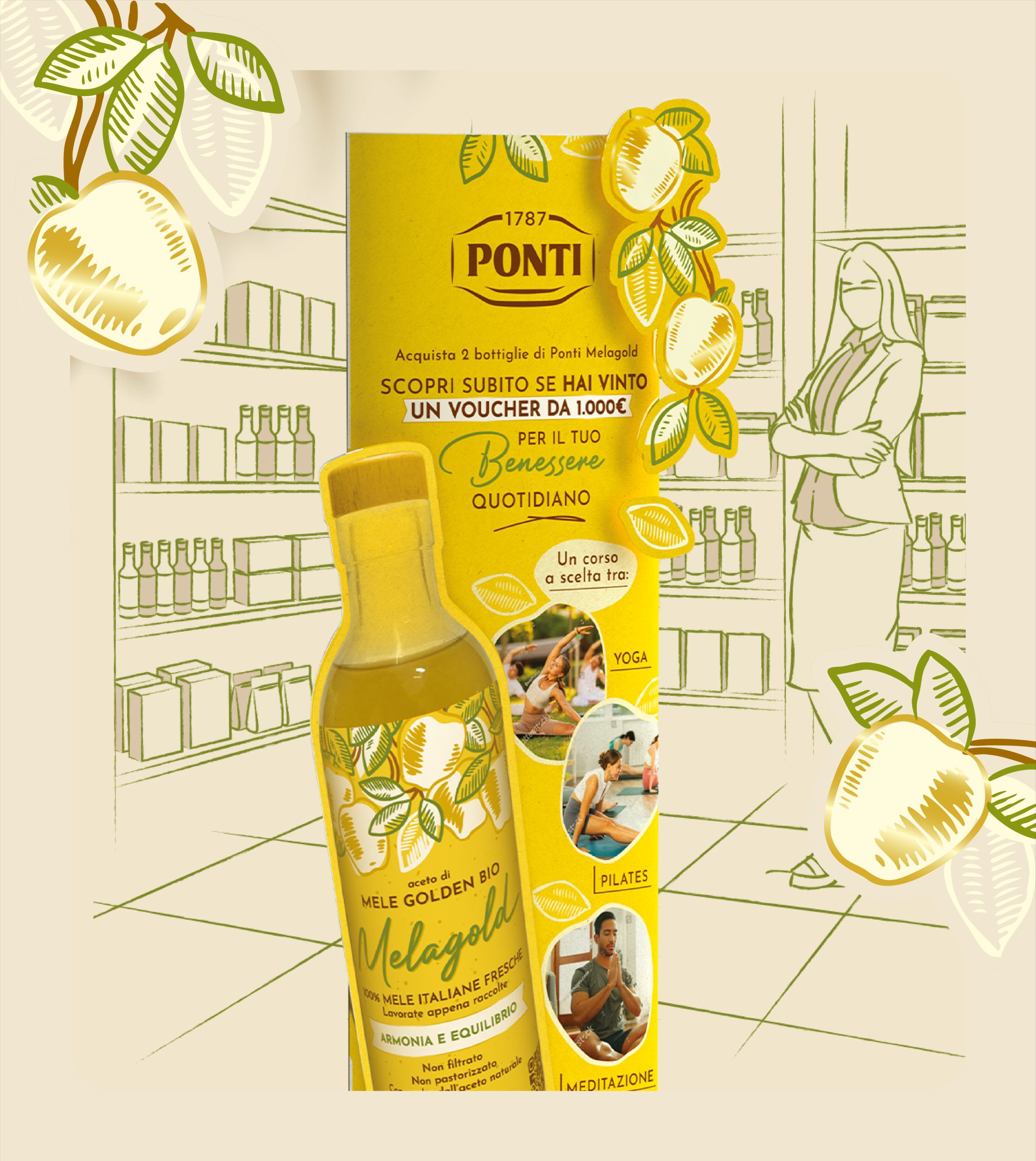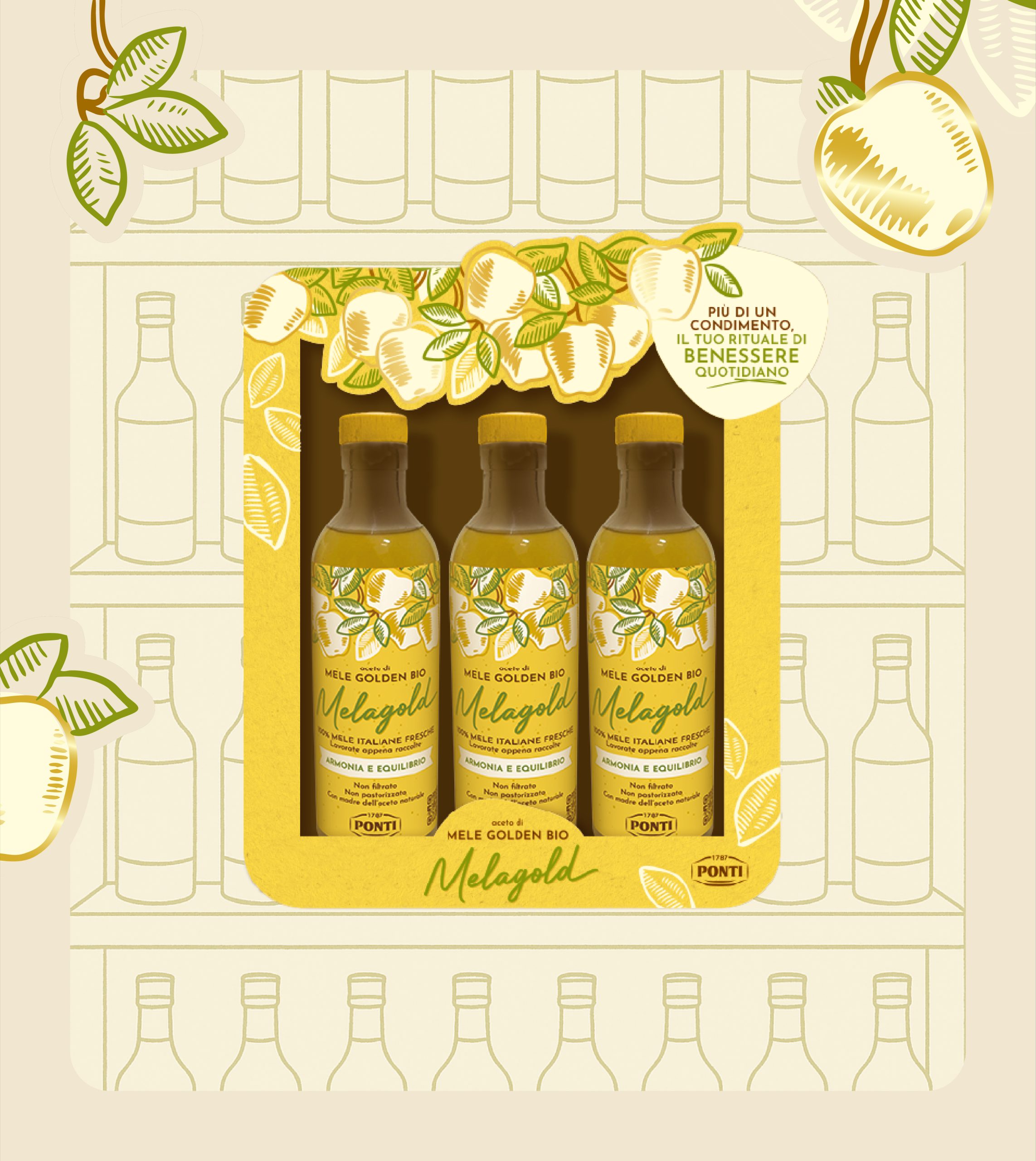Melagold è il nuovo aceto di mele bio firmato Ponti. Non un semplice condimento, ma un gesto quotidiano di benessere. Con il concept “Drink Different”, l’abbiamo posizionato come un aceto rivoluzionario: il primo buono anche da bere. Un racconto multicanale che combina i linguaggi e i codici visivi del mondo tech con quelli del wellness, rompendo i confini della categoria per dare vita a un immaginario del tutto nuovo.